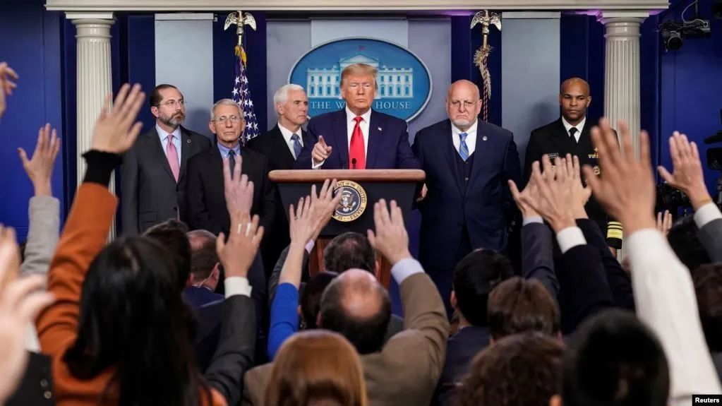 在美国时间2月29日,华盛顿州卫生官员报告了美国境内首例新型冠状病毒死亡病例后,美国总统特朗普、副总统彭斯和卫生官员们召开了新闻发布会,宣布将对伊朗实施额外旅行限制,禁止过去14天内去过伊朗的外国人入境,同时强烈建议美国人不要前往意大利和韩国受到疫情影响的地区。